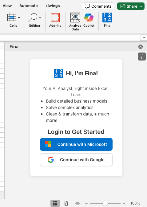 Create your free account or sign in to access Fina's powerful AI capabilities.