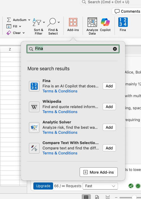 Search for "Fina" in Microsoft AppSource and install with one click.